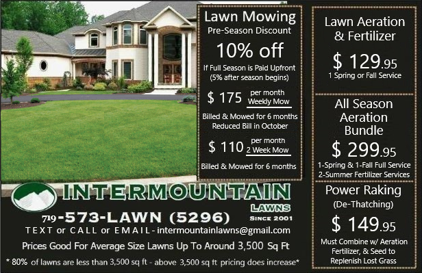 At Intermountain Lawns we want to keep existing lawns healthy & beautiful. Over-Seeding with our Aeration & Fertilizer Services is not meant for Lawn Repair. OVER-SEEDING, just as it sounds, is when grass seed is applied over the top of the lawn after aeration & fertilizer with a lawn spreader. When the ground is opened by aeration any seed that falls or gets washed into the aeration holes (which are several inches apart) when watering will be the only seed that grows. Gardening 101 – Seed needs to be inside the ground to grow. Over-seeding is the easiest, cheapest, and fastest way to help “thicken” an existing struggling lawn but requires patience and several applications/seasons to really get a fuller lush lawn because it’s a slower process, one Aeration at a time. Let’s face it, growing grass in Colorado is no easy task, sometimes it feels like we put 12 months’ worth of work into a 6-month lawn season to keep lawns nice. We take every Aeration opportunity to fill in those Aeration holes with premium Sports Turf Grass Seed by Vitality. Tall Fescue, Kentucky Bluegrass, Perennial Ryegrass combined & designed for the durability of a sports field, resilient to harsh Colorado temperature changes and rough play, yet looks beautiful and livens up your lawn with a deep, rich color. The Fescue and Rye grasses mimic the look of Kentucky Bluegrass, so the seed doesn’t look like a blended grass seed.